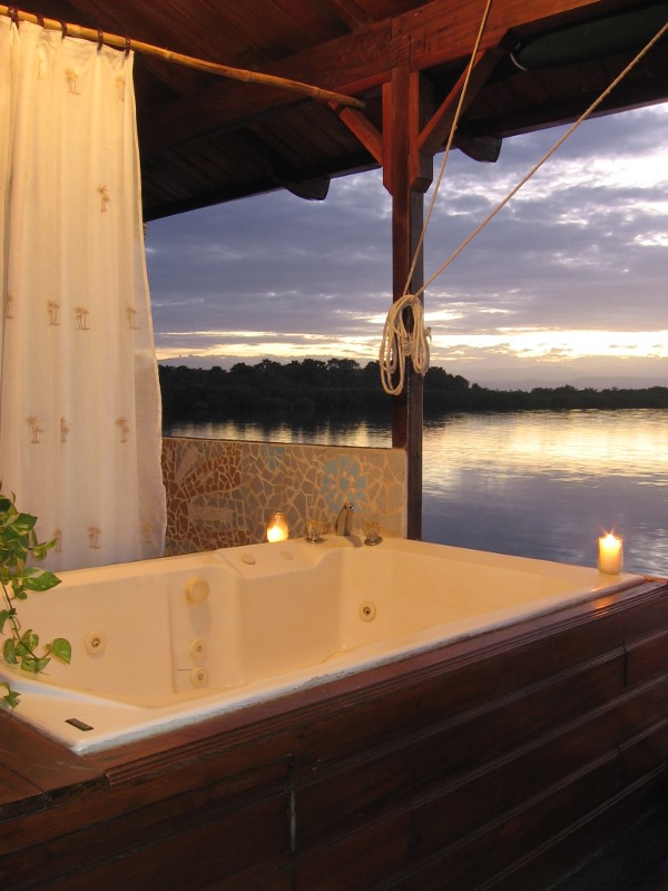 The first thing you notice when entering the ocean-front room is the enormous draped bed. From there your eyes sweep to the balcony complete with outdoor shower and jacuzzi, both adjacent to a hammock and reclining chairs for watching the sun set over the water. This place is right out of a romance novel.