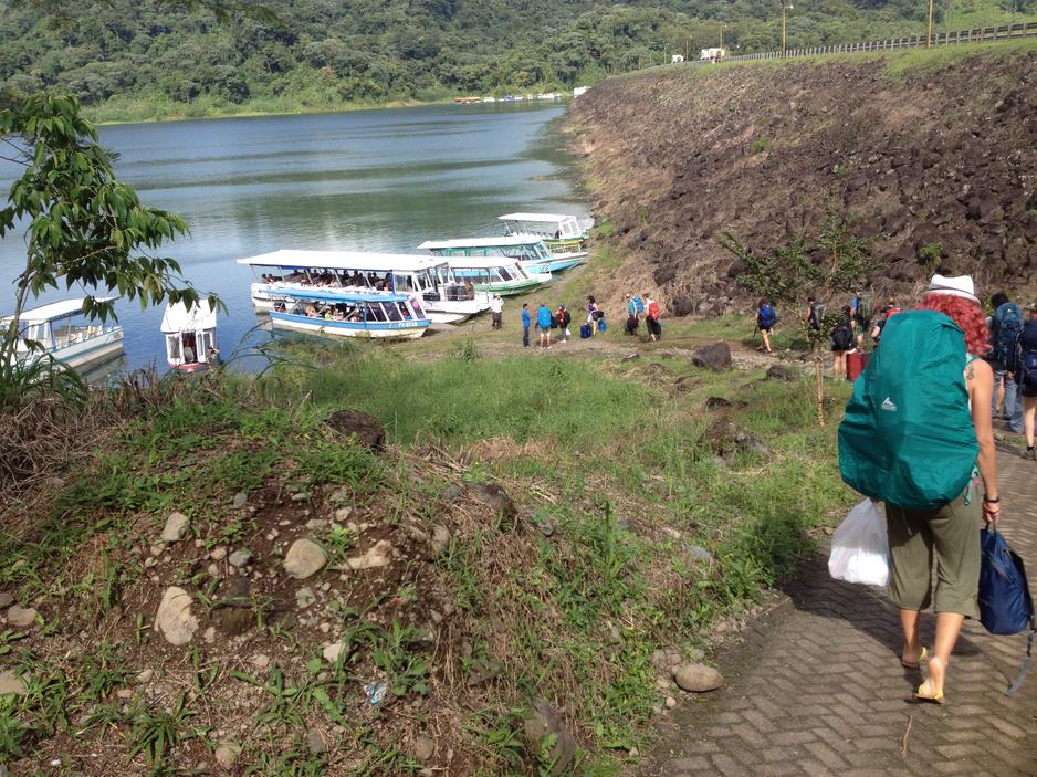 - Arrive at the Arenal Lake Dam dock after a 15 to 30-minute ride (depending on the location of your hotel). Here, you will board our covered 22-passenger boat and cruise across Lake Arenal in 30 minutes. During your ride, you’ll enjoy great views of the Arenal Volcano and the Monteverde mountain range.