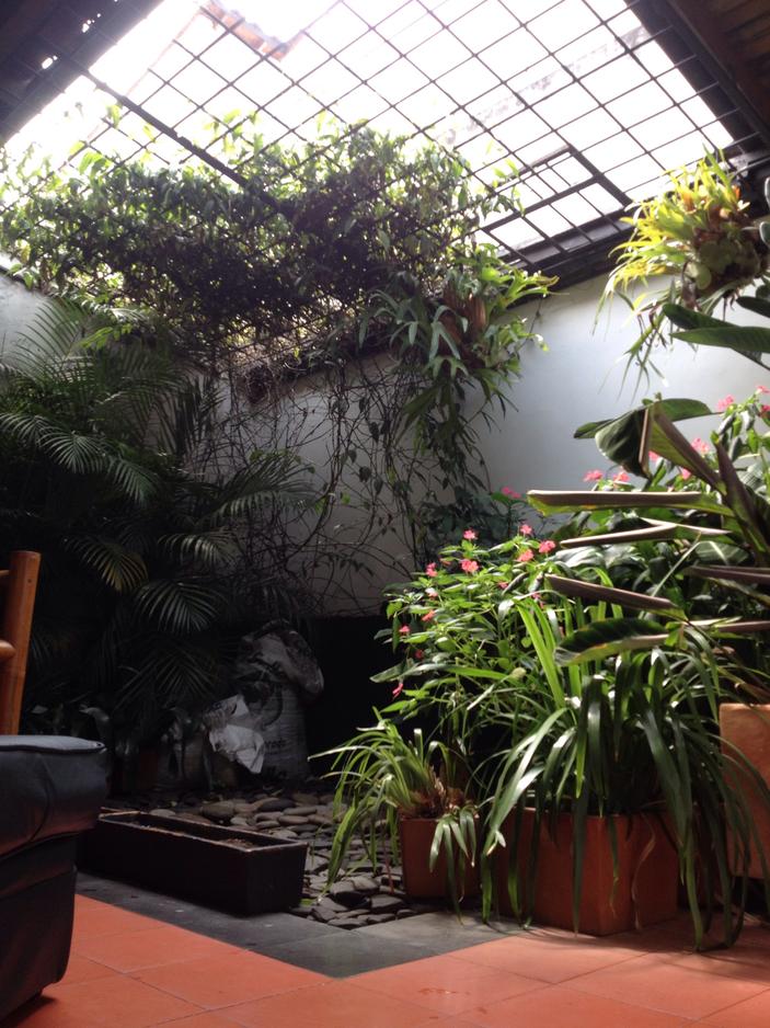 Really clean and chill. Has a kitchen. 70000 COP for a private room and fruit for breakfast. We moved here after a night at Casa Kiwi to get away from the cat there (Laurence has allergies). The pic is the view from our room into an indoor garden area.