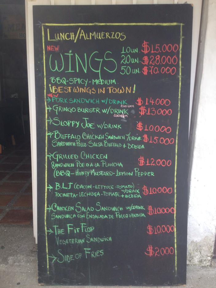 Cheap food and all day breakfast! Had a buffalo chicken sandwich and coke for $15,000 COP.