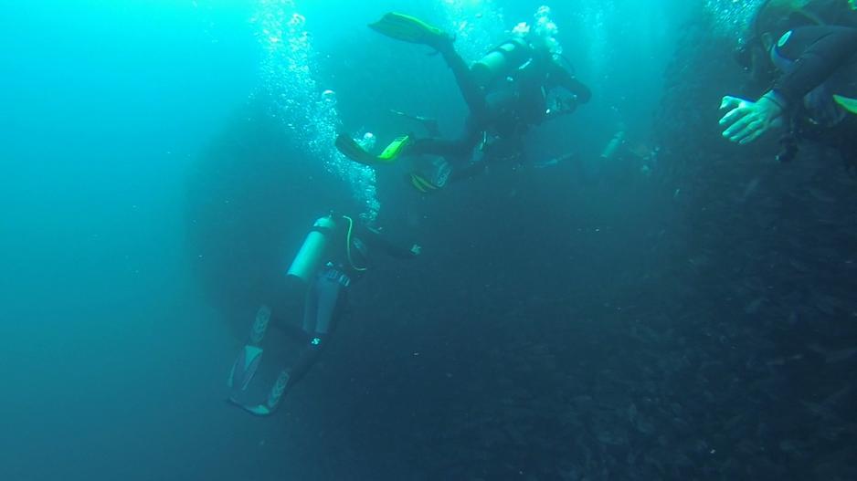 This was unreal. Here’s a video of this giant school of fish at Kicker Rock.
