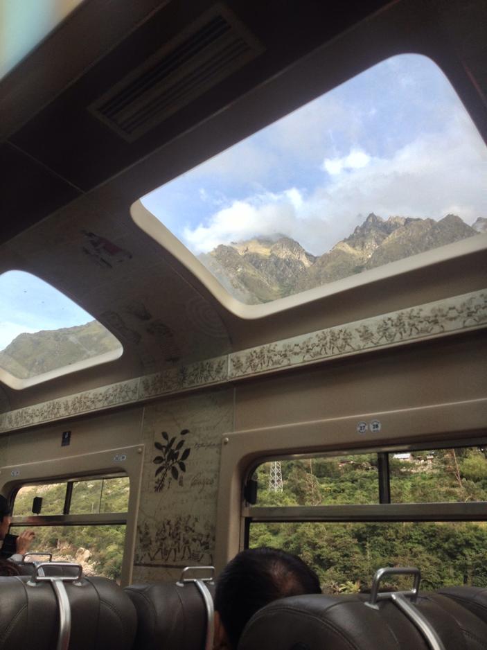 After our lunch in Aguas Calientes we had to run to catch our train because our bags were still at the hotel. Once boarded we were excited to realize that we’d be able to see out the ceiling windows at the beautiful Peruvian landscapes flying by.