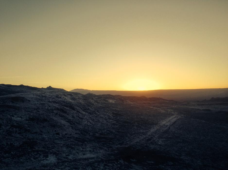 As the sun started setting we pulled off the road onto ground that may have been beneath a salty body of water long ago - streaks of salt covered the hillscapes and where we decided to sit was little more than a salt block.