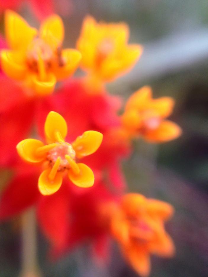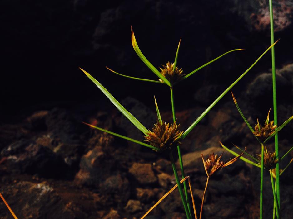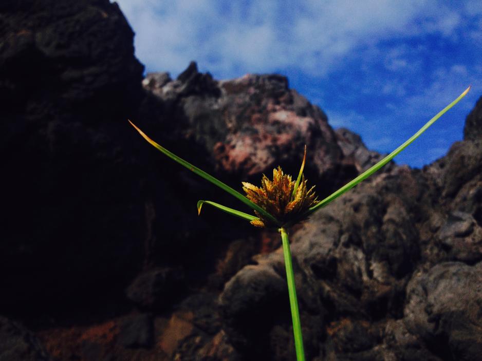 Saw these peculiar flowers in the volcanic cliffs near the water. They each have three stems that point out in near-perfectly-equal angles from each other.