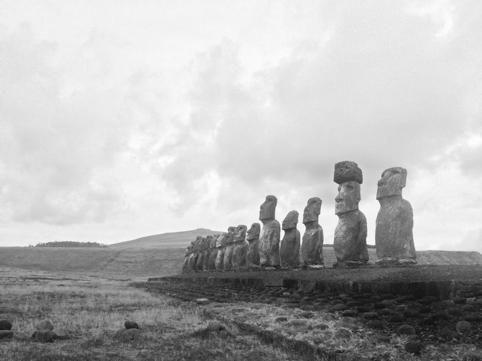 Ahu Tongariki Graveyard Tsunami hit the island 1970 and washed the moai around They all used to have hats, but most of the hats broke