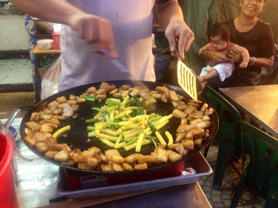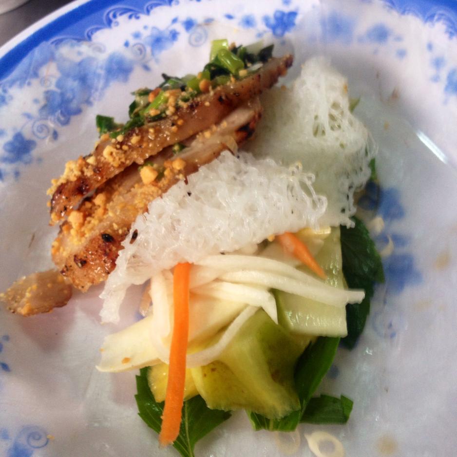 Vegetable pickles carrot, chatote (vegetable pear), cabbage, etc. Super tasty (middle top dish, just below Pig). 7,000 IDR.