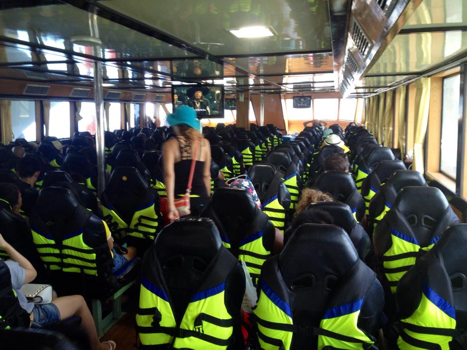 | 1:11PM | In the taxi shuttle. | 2:33PM | At the boat terminal. | 2:42PM | On the boat. | 3:07PM | On our way! | 4:44PM | Arrived!