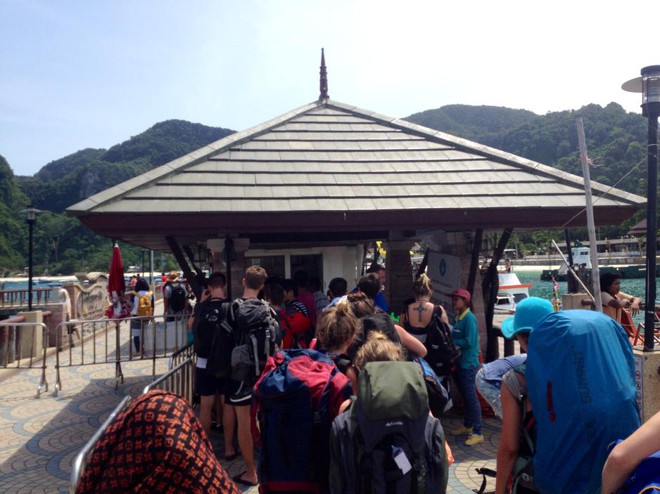 | 1:39PM | Walking to the piers. | 1:43PM | At the piers. | 1:59PM | Boarded the boat. | 2:04PM | And we’re off. | 4:08PM | Arrived in Phuket. | 4:17PM | In a shuttle. | 4:22PM | On our way. | 5:15PM | At the airport. | 5:31PM | Checked in. | 5:36PM | Through security. | 6:40PM | Take off! | 7:45PM | Landed. | 8:05PM | Picked up our bags. | 8:15PM | On a bus. | 8:32PM | At the skytrain? | 8:44PM | On the skytrain. | 8:58PM | At transfer station. | 9:00PM | On the train again. | 9:10PM | At Surasat train station. | 9:28PM | At our hostel.